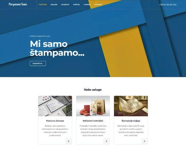 Kompanija specijalizirana za offset štampu velikih tiraža. Fokus je na preciznosti, kvalitetu i dugoročnoj saradnji. Ključni izazov bio je predstaviti širok spektar štamparskih usluga uz naglasak na pouzdanost, što smo riješili jasnim prikazom procesa i prednosti za klijente.