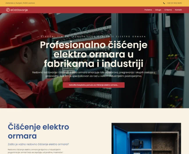 Kompanija za profesionalno čišćenje elektro ormara u industriji. Ključni izazov bio je predstaviti ovu usko specijalizovanu spektar usluga na jednostavan i pregledan način. Riješili smo to kroz strateški raspoređene sekcije i direktan, jasan copy.